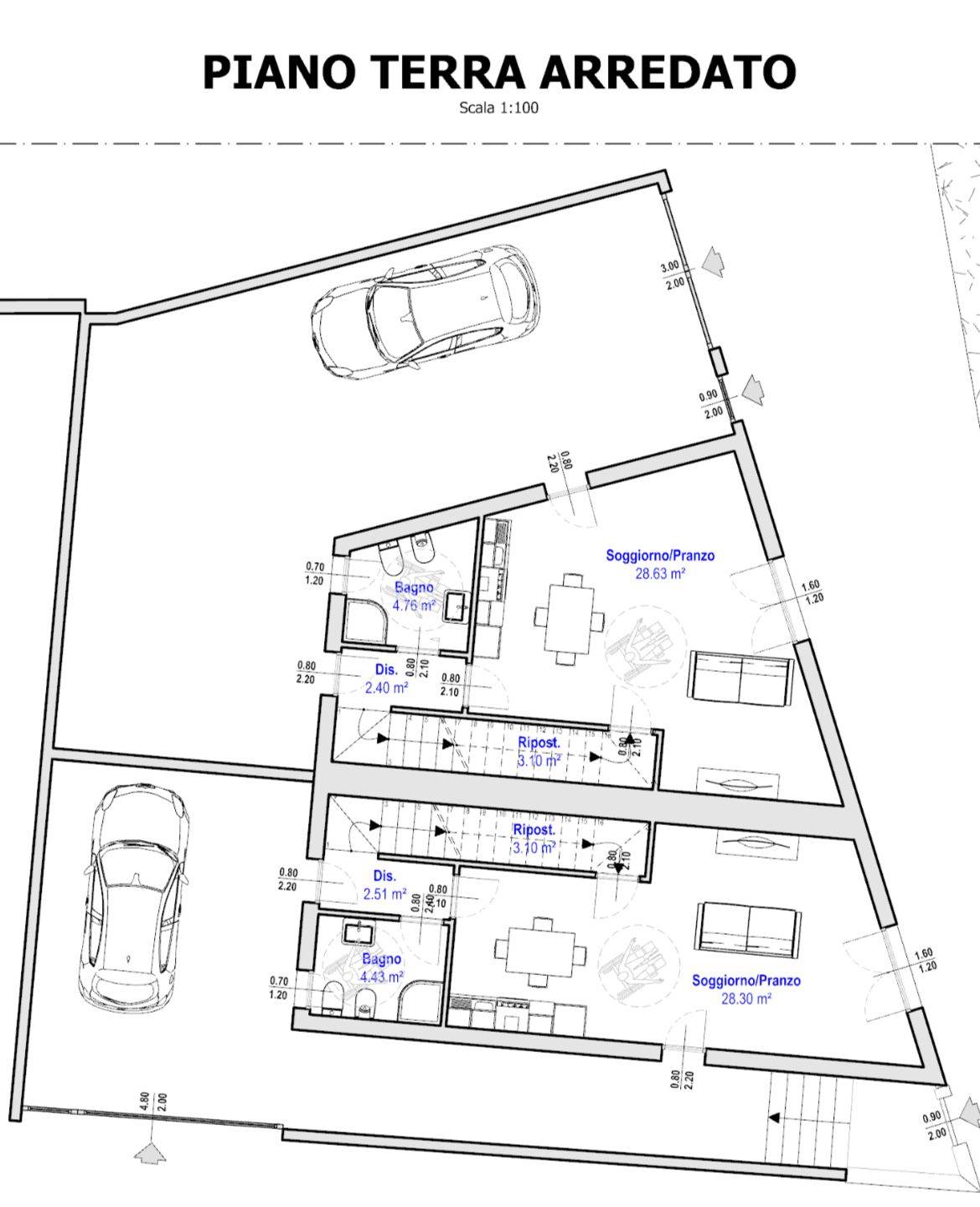 La villa di tipologia trivano sarà composta da: